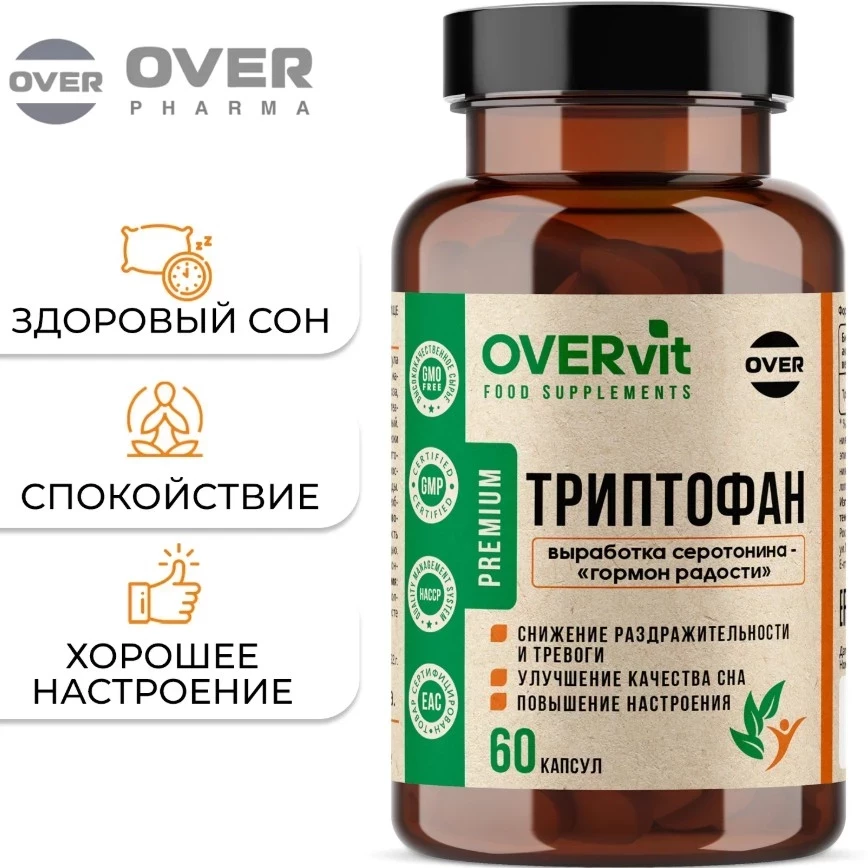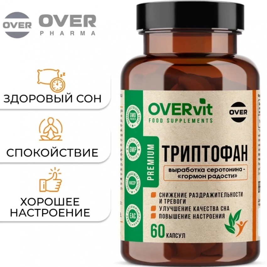 Триптофан от OVERvit — это одна из ключевых позиций в списке топ БАДов для сна, созданная для тех, кто ценит не только качественный отдых, но и стабильное эмоциональное состояние. Эта аминокислота стимулирует выработку серотонина и мелатонина, отвечающих за глубокий сон, уравновешенное настроение и снижение тревожности. Препарат помогает справляться с переутомлением, раздражительностью и нарушениями сна, оставаясь безопасным и натуральным решением для поддержки нервной системы.