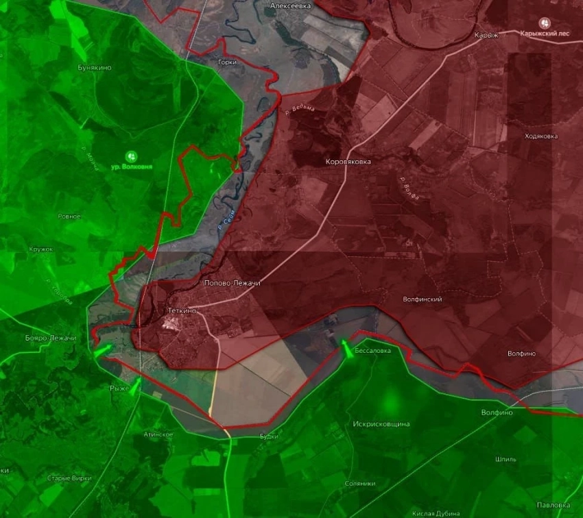 В Тёткино ВСУ терпят неудачи, закрепиться не могут. Небольшие подразделения ВСУшников остаются в посадках и по берегу Сейма.