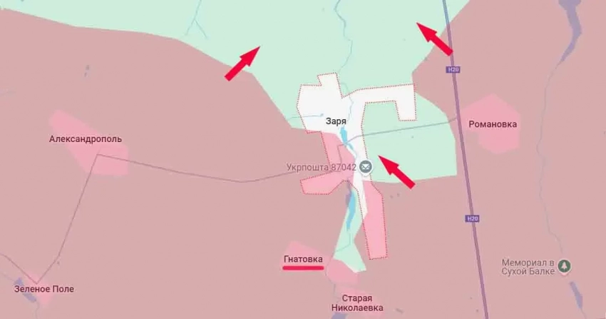 К вечеру 25 мая поступают сообщения об освобождении Игнатовки (Гнатовки) и взятии под контроль значительной части упомянутой Зари. Это свидетельствует о том, что один из основных рубежей обороны ВСУ на стыке двух направлений обрушился и что в ближайшее время состоится выравнивание фронта по линии Романовка-Заря-Александрополь-Новая Полтавка.