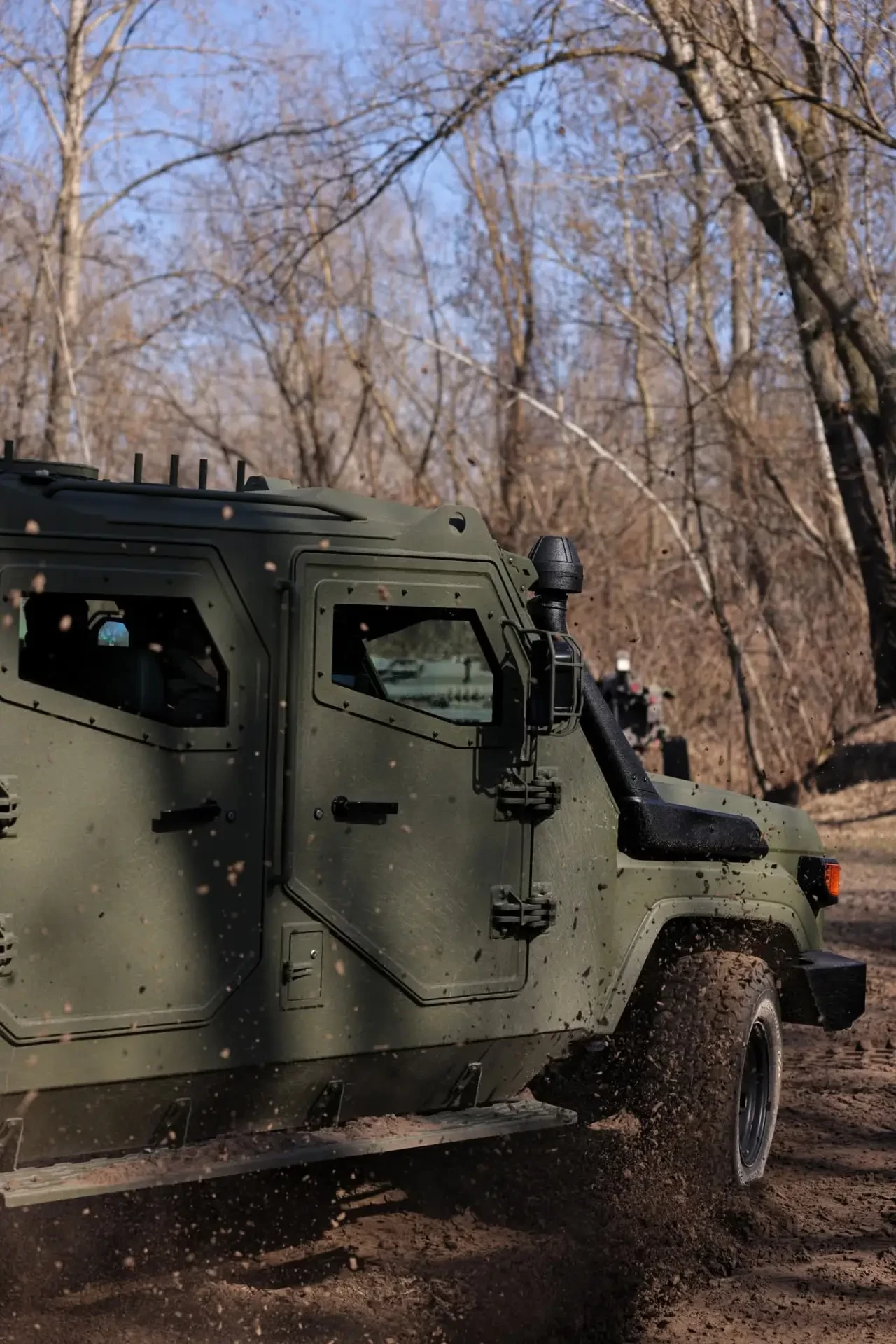 Машина оснащена поворотной турелью для пулемета с защитным экраном, топливными баками, позволяющими преодолевать более 1000 километров без дозаправки, а также шноркелем для преодоления водных преград. В базовой комплектации предусмотрены камеры с ночным видением и возможность установки средств радиоэлектронной борьбы.