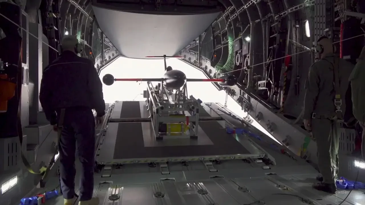 В 2022 г. компания Airbus совместно с несколькими другими организациями разработала оригинальную систему размещения беспилотников внутри грузовой кабины с запуском через хвостовой грузовой люк. На создание этого изделия потратили всего полгода, и в декабре провели первые испытания.