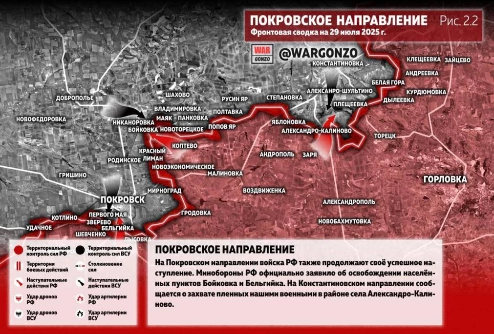 ВС России ведут ожесточённые бои в Леонтовичах и Суворово на Покровском направлении: свежие данные на 29.07.2025