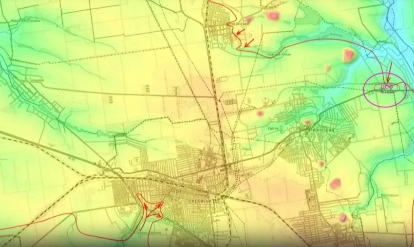 При этом самые важные бои, направленные на освобождение Покровско-Мирноградской алгомерации, происходят немного севернее, а именно в районе населённого пункта Родинское, где российские части, зацепившись за северные и восточные окраины города пытаются зайти в микрорайон высоток.