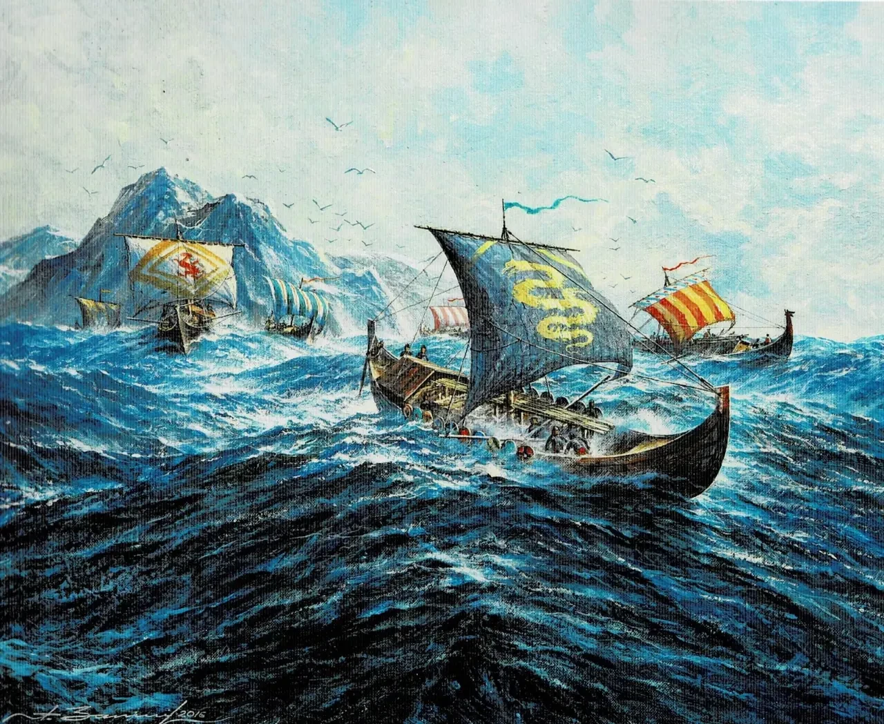 1. Викинги, идущие в набег. Холст, темпера, акрил, 50х60 см. 2016 г.