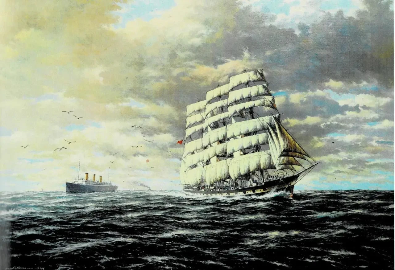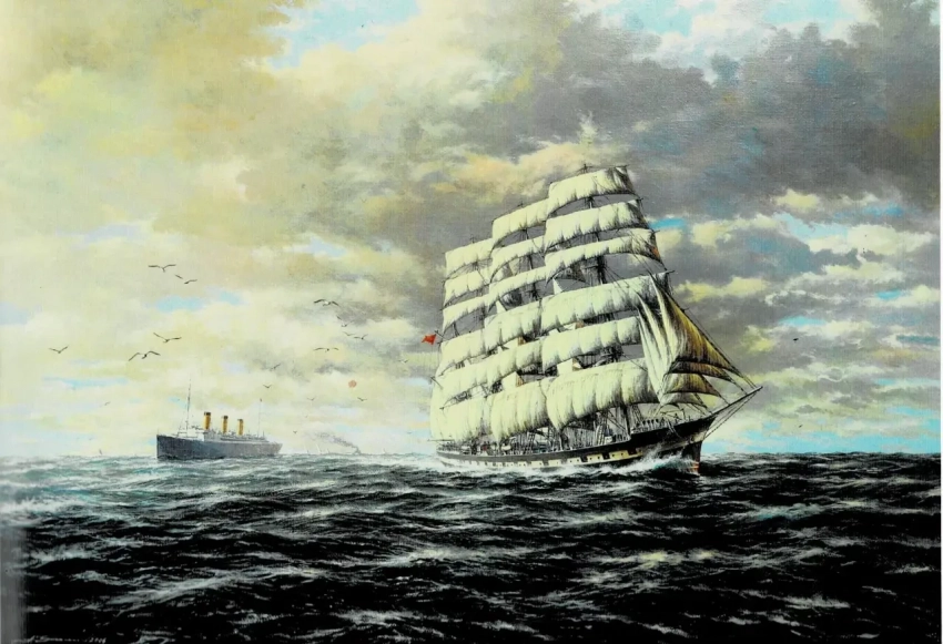 Третий шаг – выбор объекта, который следует поместить в центр бурной водной стихии. Вы берете в руки фотографию корабля, начинаете ее разглядывать и... погружаетесь в глубокое раздумье. Что за нагромождения непонятных палочек, верёвочек, железных или деревянных штучек? Любой корабль или судно – очень сложный объект, и вы вдруг начинаете понимать, что желательно бы иметь еще и некоторые профессиональные знания. Художнику-маринисту нужно не только уметь смешивать краски, но и иметь представление о конструкции корабля, знать, откуда «растут» мачты, где начинается и где кончается каждая из «веревок», то есть снастей такелажа. И что торчащие из палубы столовые ложки на самом деле – дефлекторные трубы... А если вы хотите изобразить реальный сюжет, некое событие, то неплохо бы знать, хотя бы в определенных пределах, историю флота, кораблестроения и конкретного корабля, которому предстоит стать героем вашей картины.
