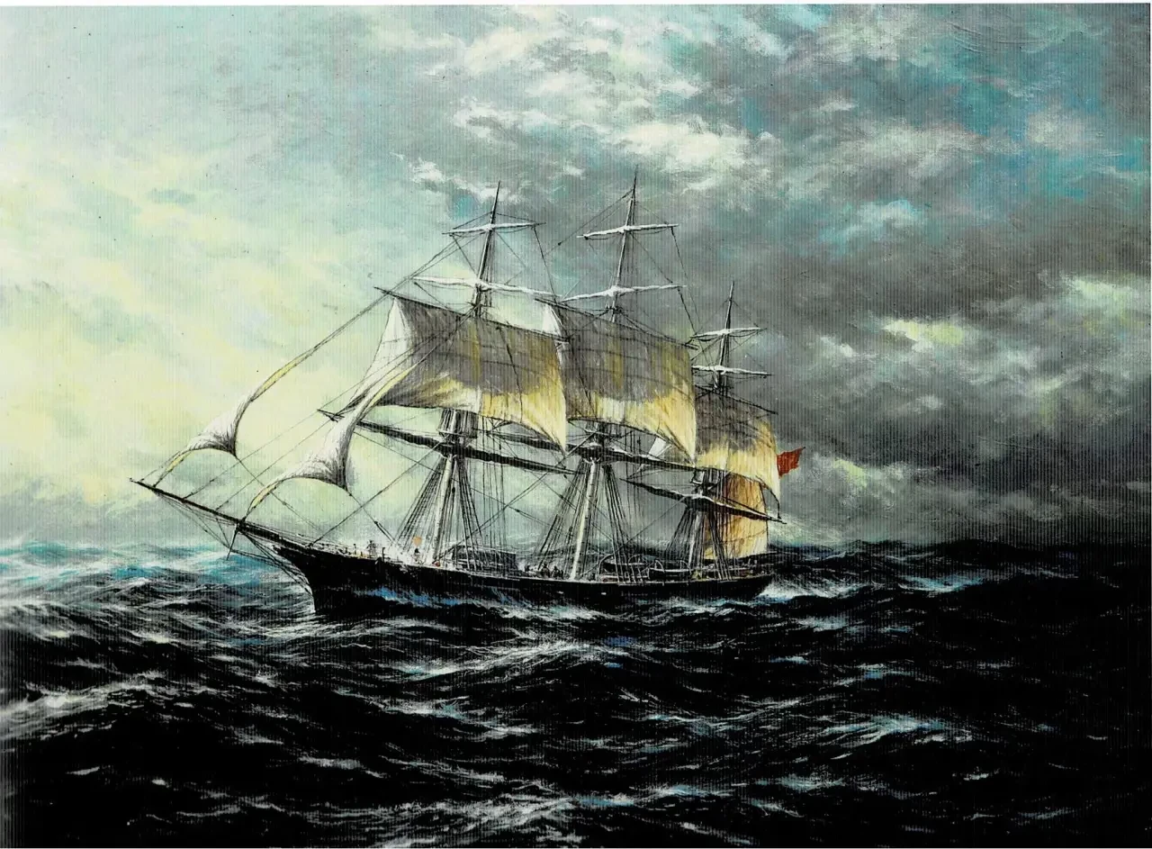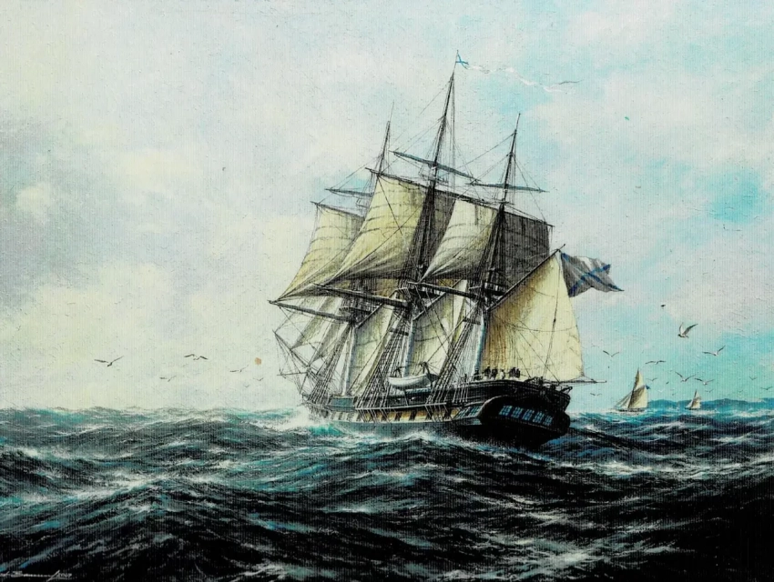 8. Фрегат «Паллада», уходящий в Атлантику. Холст, темпера, акрил, 60х80, 2007 г.