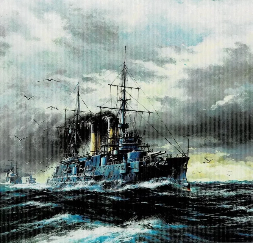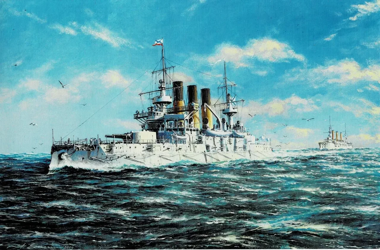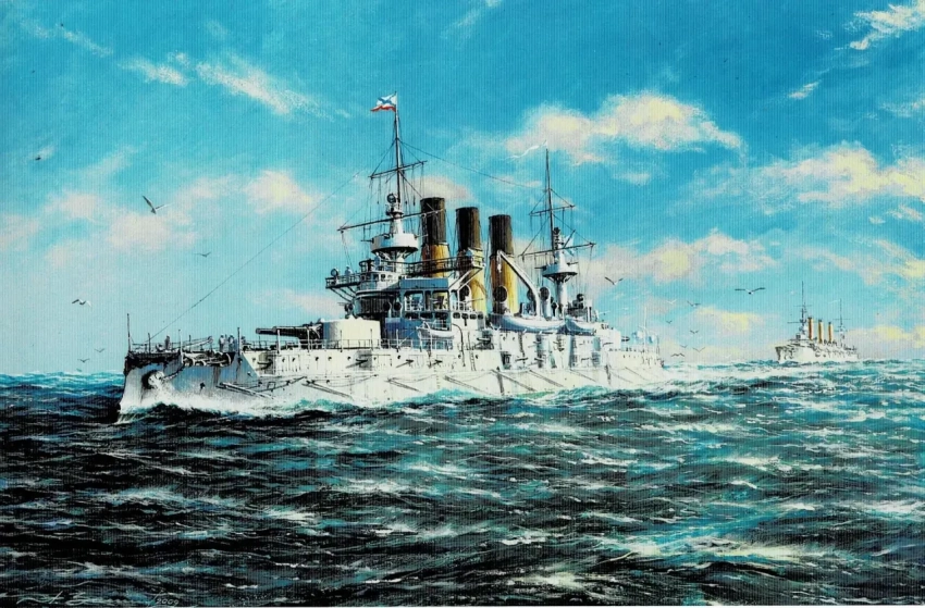 9. Эскадренный броненосец «Орел» 1905 г. Бумага, темпера, гуашь, 43х39, 2005 г.