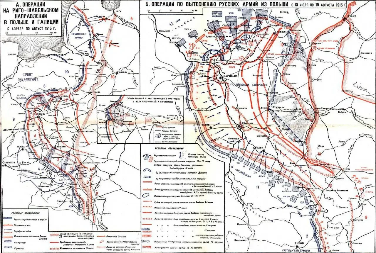 Русскому верховному командованию приходилось решать задачу по выводу войск из русской Польши, так как после потери Галиции этот регион утратил роль возможного плацдарма для удара по Германии и грозил погубить находившиеся там армии.