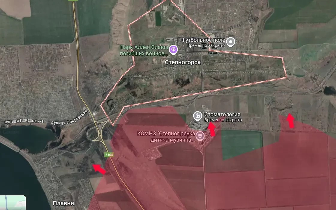 Бои идут восточнее третьего микрорайона Степногорска, где ранее ВСУ удалось отбить северную его (микрорайона) часть. Теперь противник с потерями отходит в основную часть города.