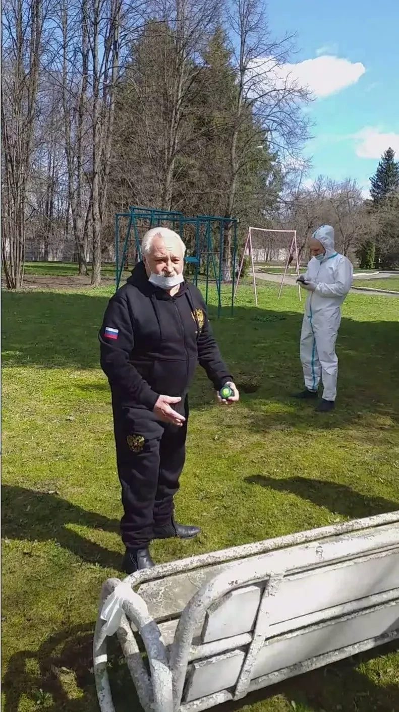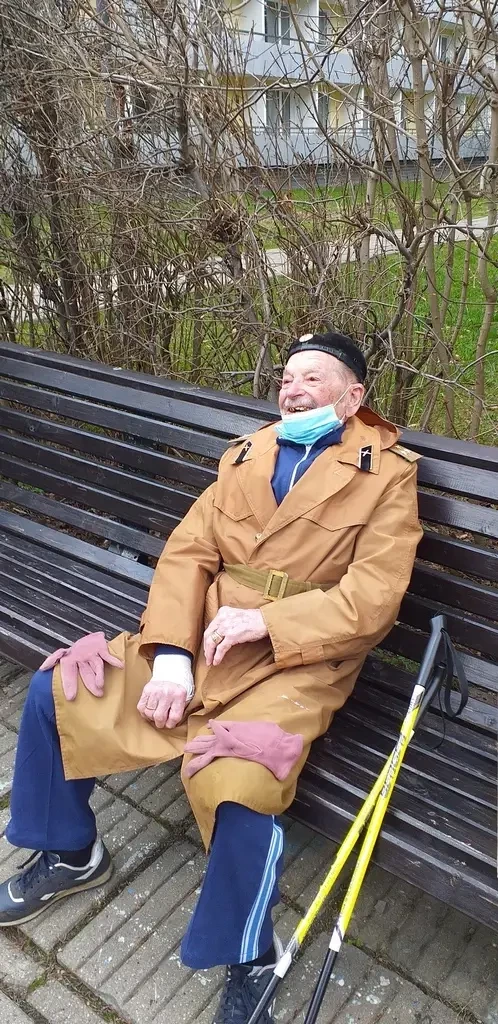 С утра погода порадовала — ясная и солнечная. Я вышел на прогулку и увидел, как 99-летний фронтовик уже накручивает круги по территории.