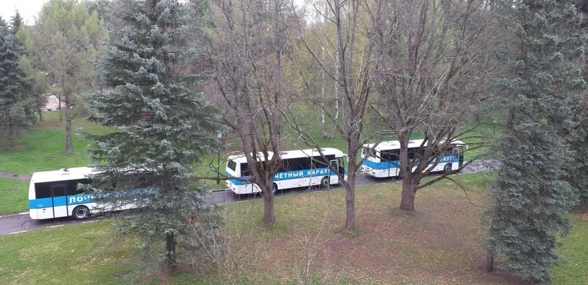 Кстати, в 7 утра нам предстояло загрузиться в автобусы. Почётный караул уже вышел, а ветераны суетились и торопились...