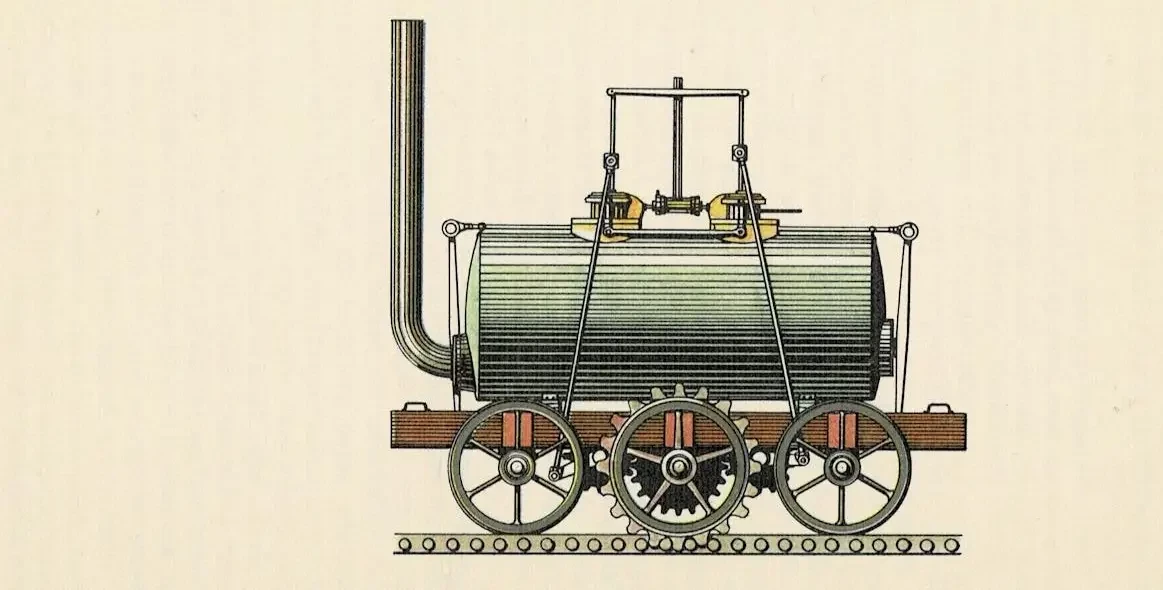 Ну а Бленкиншоп решил сделать железную дорогу с зубчатым ведущим рельсом, который для неё изготовил механик Мэтью Мюррей. Зубчатое ведущее колесо катилось по гребёнке, закреплённой сбоку от рельсов. Миддлтонская машина проработала четыре года без перерыва и при этом перегоняла до 30 вагонеток с углем с небольшой скоростью 5 км/ч. А всего было построено четыре таких паровика, на одном из которых взорвался паровой котел из-за неумелой работы машиниста с его предохранительным клапаном.