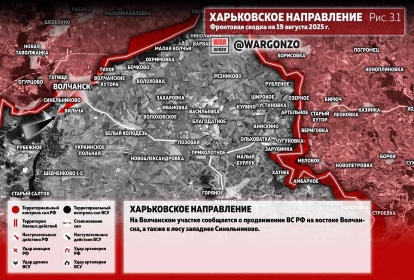 Карта боевых действий на Украине. Ситуация в зоне СВО на 20.08.2025