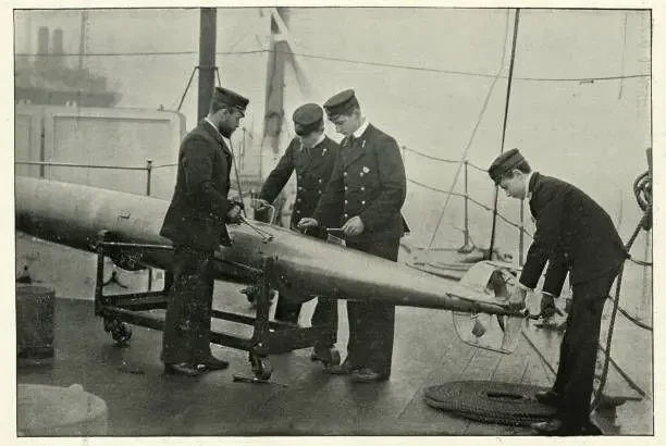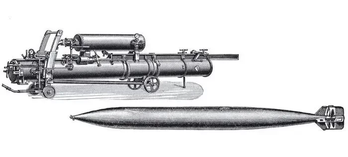Торпеда Уайтхеда в компании торпедного аппарата его же конструкции