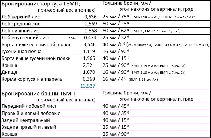 Проведя непредвзятое сравнение противотанковых возможностей комплексов вооружения БМП-3 и новой ТБМП, надо отдать предпочтение сочетанию дальнобойных сверхзвуковых кумулятивных ПТУР «Атака» и неотразимой мощи на коротких дистанциях боя подкалиберных снарядов с урановым сердечником 75-мм орудия на новой машине. В комплексе с лучшей броневой защитой при сопоставимых габаритах и превосходящих подвижности и проходимости машина может претендовать на приоритетное оснащение штурмовых подразделений Сухопутных войск.