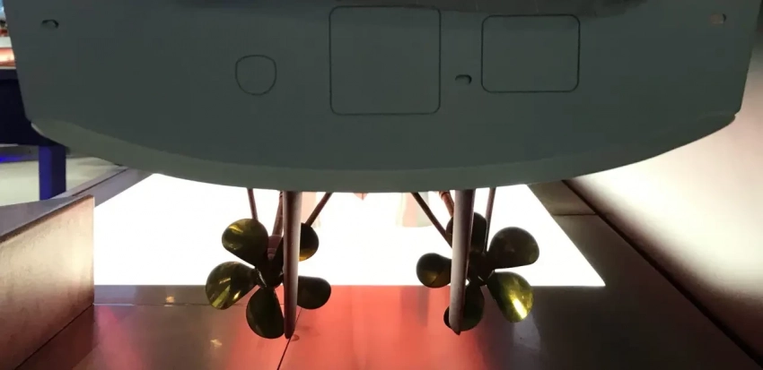 А для движения на крейсерской и более низких скоростях будут задействованы два гребных электродвигателя, питание которых обеспечивают до четырех дизель-генераторов, в то время как газовая турбина будет при этом отключена.