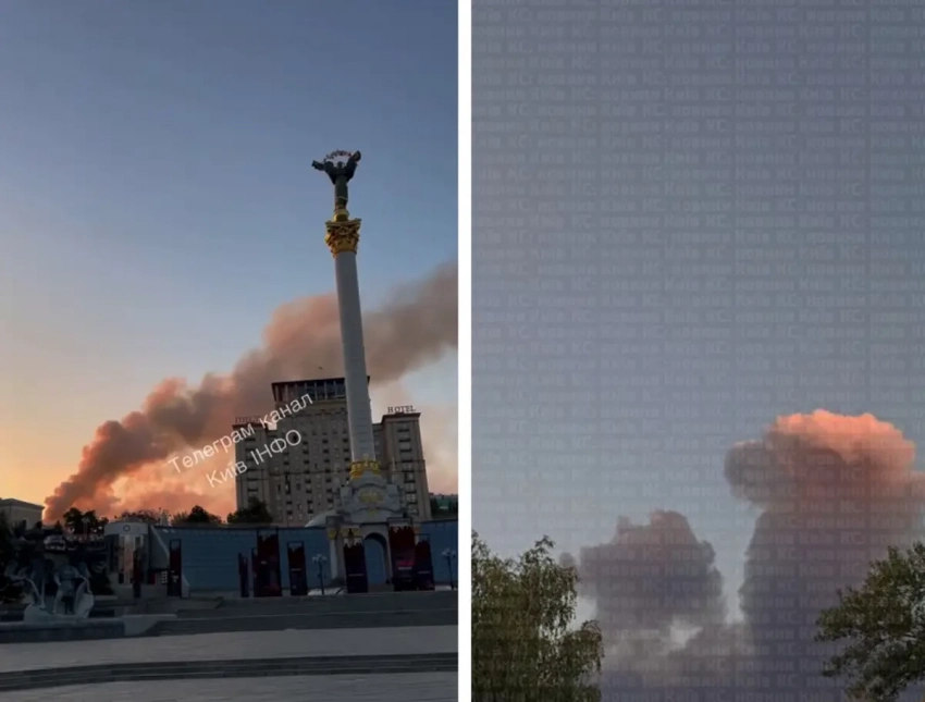 Столб дыма после прилёта в Киеве виден с майдана