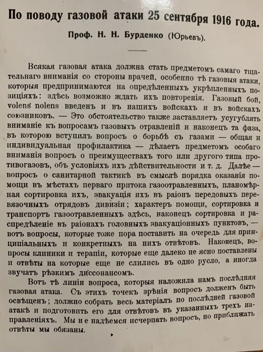 Статья Бурденко о поражении боевыми газами