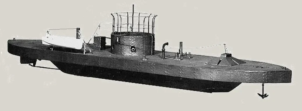 Корабль был спущен на воду 30 января 1862 года на верфи Continental Iron Works в Гринпойнте, Бруклин, штат Нью-Йорк, и был оснащён двумя массивными 11-дюймовыми пушками Дальгрена. Команда провела следующие несколько недель, устраняя недоделки в конструкции совершенно нового судна. Из-за своего уникального внешнего вида корабль получил прозвище «сырная банка на плоту».