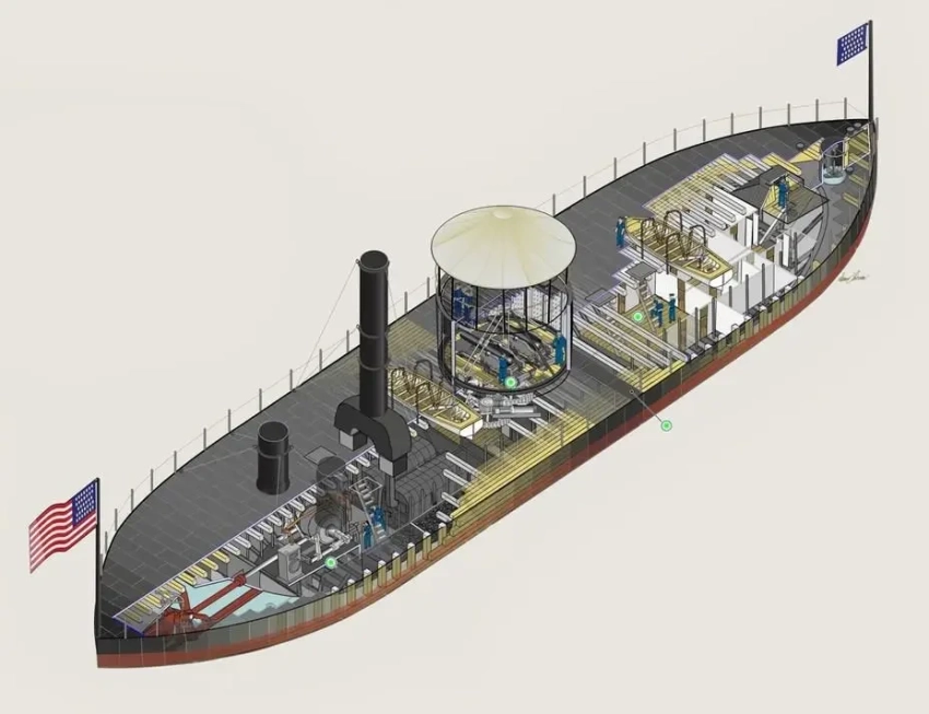 Проекции «Монитора», сделанные на основе документов «Командования военно-морской истории и наследия США»