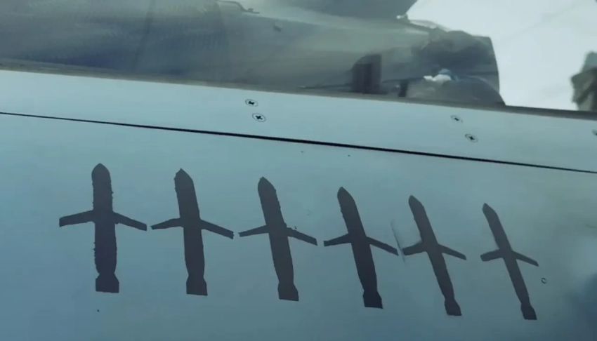 В принципе, Mirage 2000-5F может нести MICA, что-то более-менее похожее на приличную ракету ближнего радиуса действия, но вот тут ВВС Украины подкинули хвалебное видео «Миража» аж с шестью отметками пораженных российских крылатых ракет.