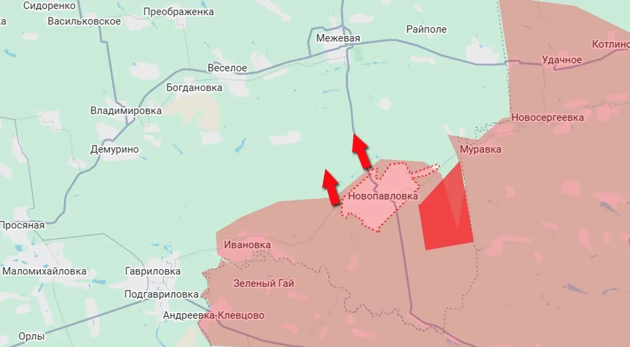 Одновременно с этим фиксируется продвижение штурмовых групп российской армии к северу от этого населённого пункта – в направлении Межевой, через которую проходит железнодорожная дорога Покровск-Синельниково-Днепр (Днепропетровск).