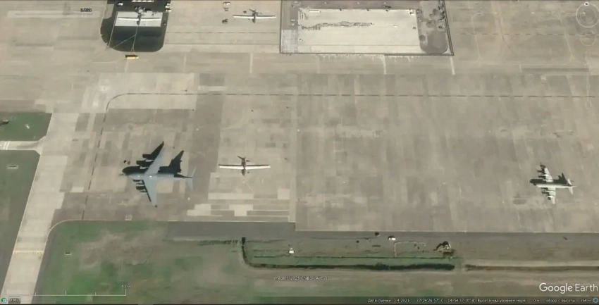 Спутниковый снимок Google Earth: самолёты Lockheed U-2S Dragon Lady на авиабазе Бил