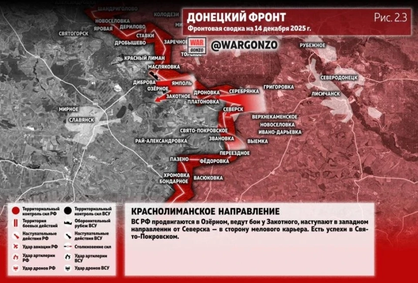Карта боевых действий на Украине. Обстановка в зоне СВО на 14.12.2025