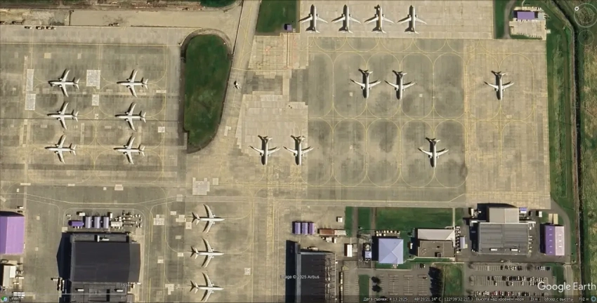 Спутниковый снимок Google Earth: самолёты Boeing P-8А Poseidon на британской авиабазе Лоссимут. Снимок сделан в апреле 2025 года