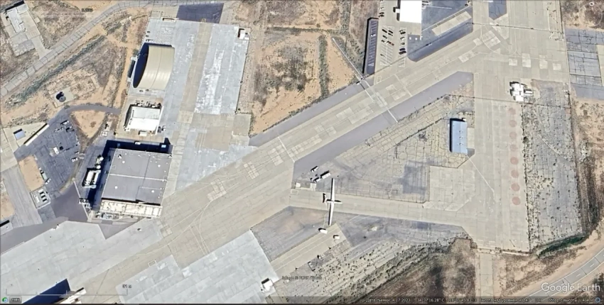 Спутниковый снимок Google Earth: БПЛА Northrop Grumman MQ-4C Triton на аэродроме Палмдейл. Снимок сделан в апреле 2023 года