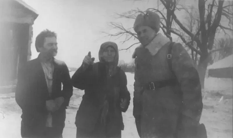 Военный корреспондент газеты «Правда» Пётр Александрович Лидов (1906-1944) с жителями деревни Петрищево — Прасковьей Яковлевной и её мужем Василием Кулик. В доме семьи Кулик Зоя Космодемьянская провела свою последнюю ночь. Сам Лидов ездил на опасные участки фронта, летал с экипажем бомбардировщика в немецкий тыл, работал под бомбежками, делал вылазки на оккупированные немцами территории. Писал о военных действиях под Смоленском, партизанах Белоруссии, об обстановке в оккупированном Минске, делал репортажи из Сталинграда, с Курской дуги, берегов Северского Донца и Днепра, из Чехословацкого корпуса Людвика Свободы. Лидов вместе с фотокорреспондентом «Правды» Сергеем Струнниковым и корреспондентом «Известий» Александром Кузнецовым погиб 22 июня 1944 года при бомбардировке противником аэродрома под Полтавой, когда немцы нанесли успешный удар местам базирования советских и американских самолётов.