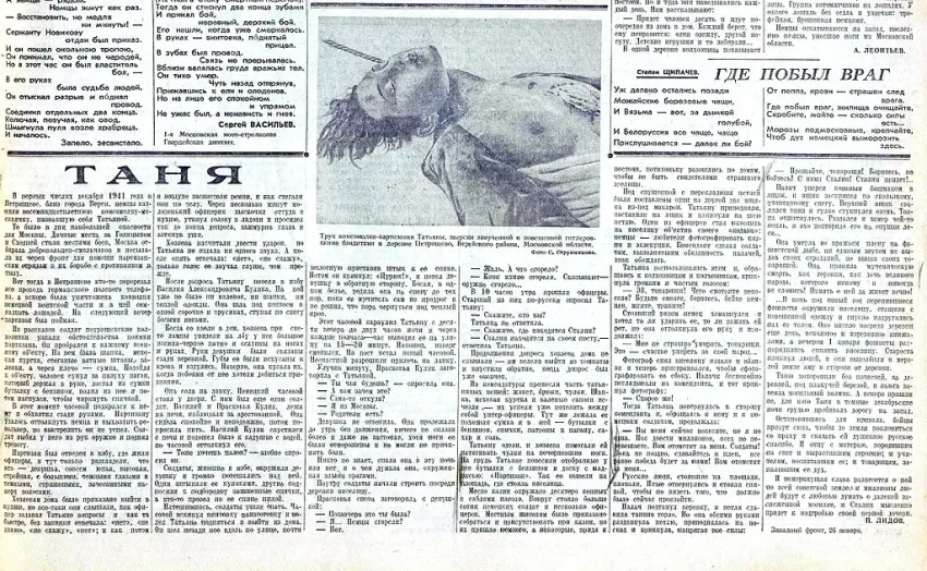Очерк Петра Лидова «Таня», газета «Правда», 27 января 1942 года, фото Сергея Струнникова