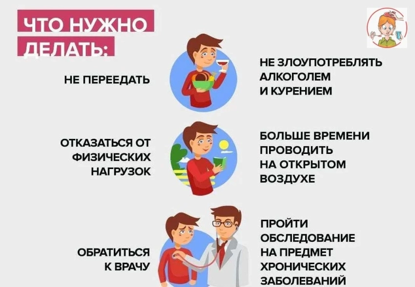 Особое внимание к своему состоянию рекомендуется людям с сердечно-сосудистыми заболеваниями, гипертонией, а также тем, кто перенёс инфаркт или инсульт.