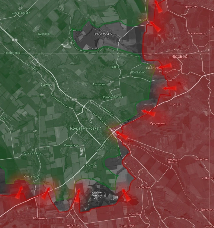 В самой Константиновке сохраняются позиционные бои у железнодорожного вокзала. Также продолжаются столкновения на подступах к Степановке и Берестку. В районе Часов Яра атаки ведутся в направлении Новомарково и Миньковки, часть последнего также контролируется не полностью.