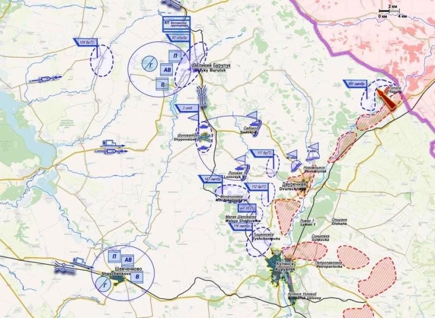 Вероятный замысел врага предусматривает последовательное наступление по сходящимся направлениям с последующей встречей подразделений ВСУ в треугольнике Плехово - Борки - Уланок.