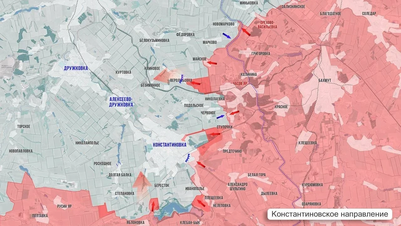 На Константиновском направлении встречные бои в городе и позиционные сражения на обоих флангах.
