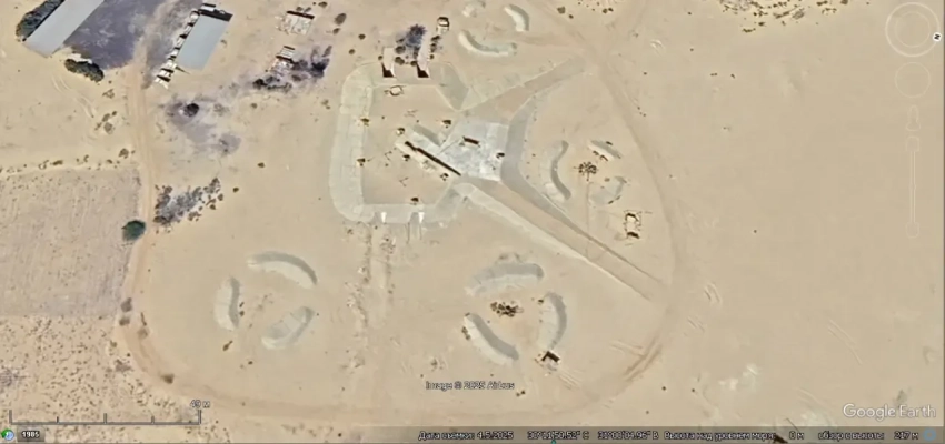 Спутниковый снимок Googlе Eаrth: позиция ЗРК С-125 в 12 км северо-западней Каира. Видно, что на позиции осталось две пусковых установки без ракет. Снимок сделан в апреле 2025 года