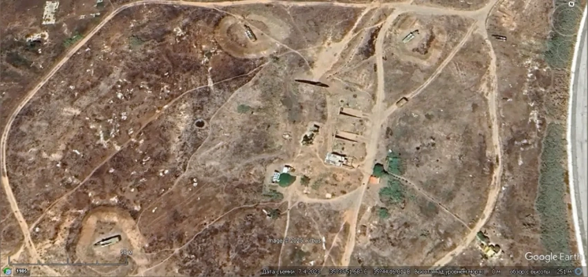 Спутниковый снимок Googlе Eаrth: позиция ЗРК С-125М1 на побережье в 8 км южнее города Банияс. Снимок сделан в феврале 2024 года