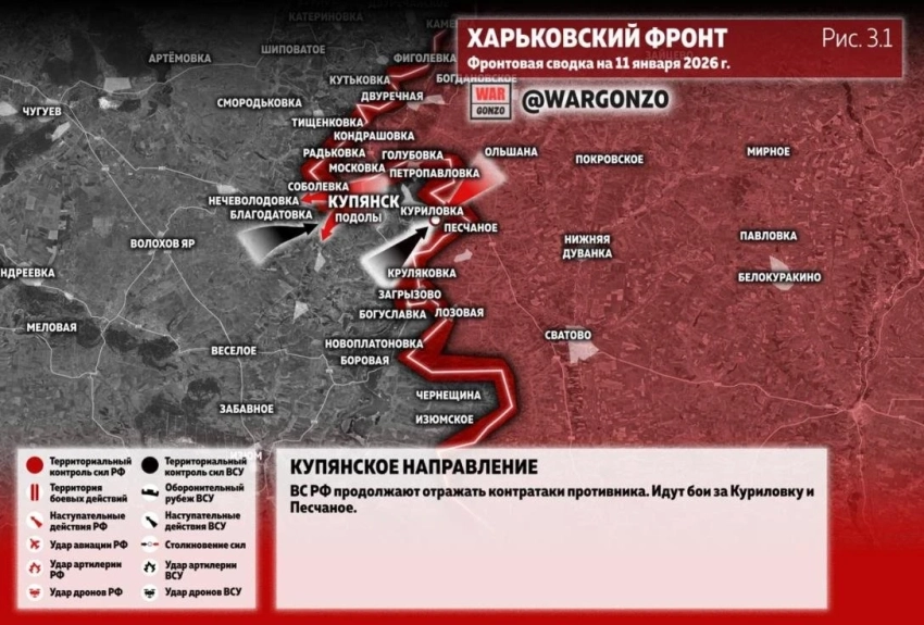 Обстановка в Купянске на 11.01.2026: ВС РФ ведут бои в центре города