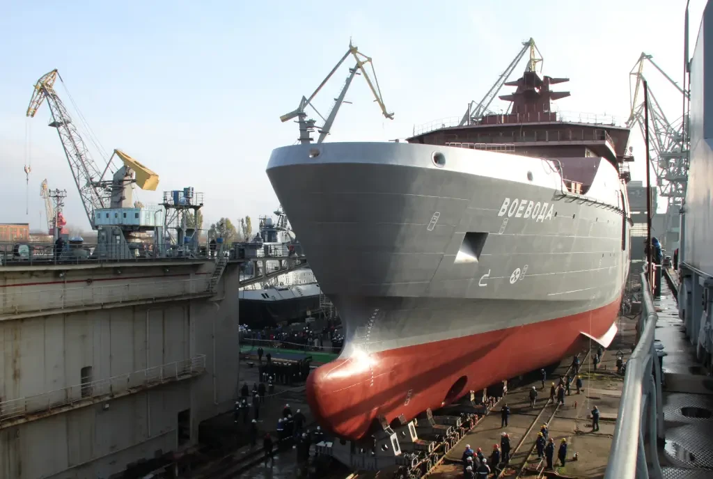 Однако строительство столкнулось с различными трудностями, которые заставили пересмотреть график работ. К указанному сроку удалось только спустить «Воеводу» на воду и перевести к достроечной набережной. Следующие несколько лет ушли на достройку и монтаж оборудования. Ходовые испытания стартовали в декабре 2023 г. и продолжались до недавнего времени.