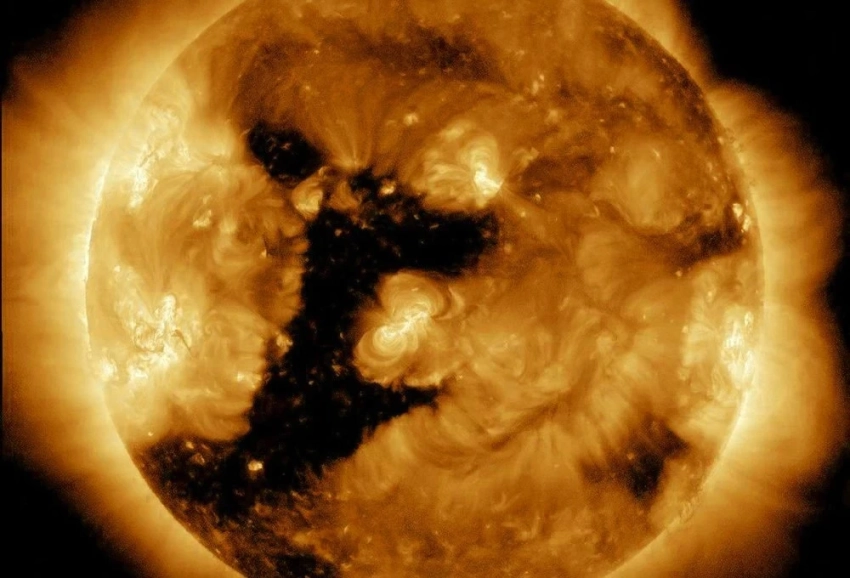 На Солнце появилась дыра в форме перевернутой единицы и размером в миллион километров