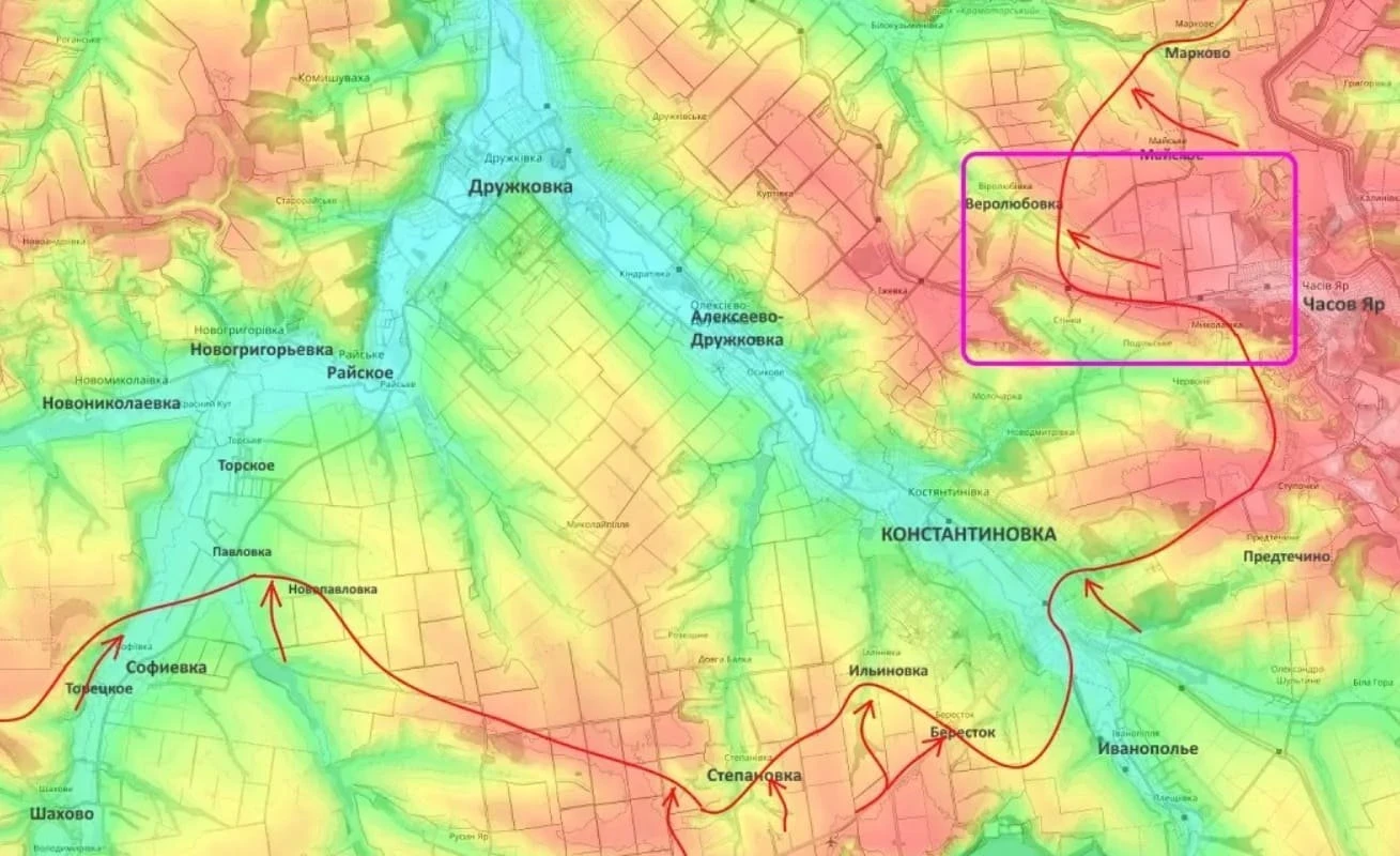 Российские войска продолжают двигаться вперёд на Славянско-Краматорском направлении. Напомним, что Славянск и Краматорск входят в крупнейшую агломерацию на той территории Донбасса, которая пока остаётся под оккупацией войск киевского режима.