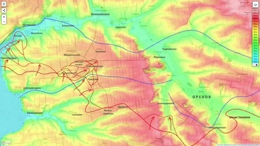 В сводке подчёркивается, что замысел действий на этом участке связан с выходом к линии реки Конка и возможным форсированием водной преграды. Такой сценарий рассматривается как основа для создания плацдарма с последующим продвижением в сторону Запорожья. Также упоминается вариант флангового удара в направлении Юрковки, который может позволить обойти Орехов с запада.