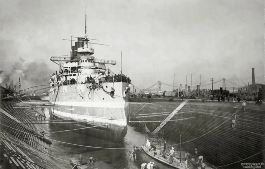21 марта 1898 г. – Ч. Крамп получает задание на броненосец, подобный «Пересвету», но с 12-дм орудиями и с двумя машинами вместо трех.