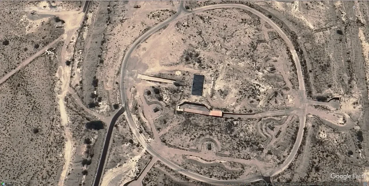 Спутниковый снимок Google Earth: СОУ 9А310М1 из состава ЗРК «Бук-М1» на полигоне Тонопа. Снимок сделан в мае 2024 года