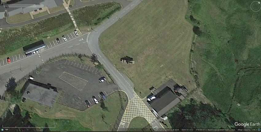 Спутниковый снимок Google Earth: СПУ 2П25 ЗРК «Куб» на британском полигоне Спейддам. Снимок сделан в июне 2018 года