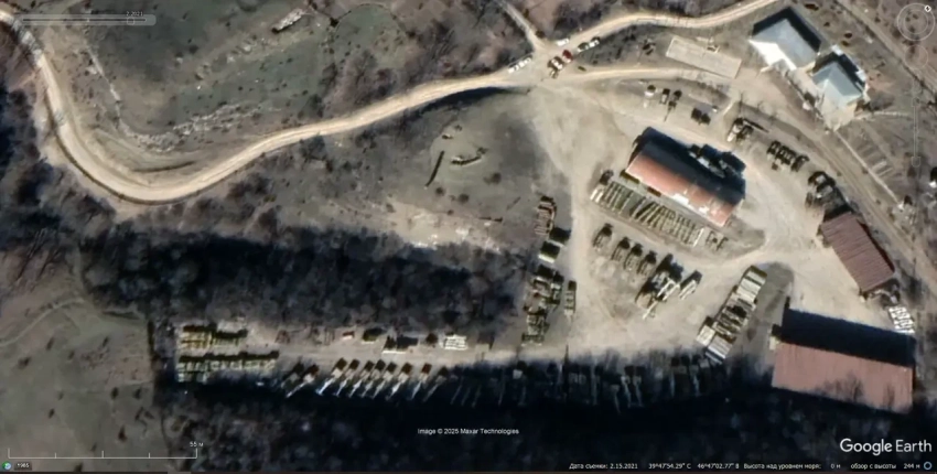 Спутниковый снимок Google Earth: база хранения ЗРК «Круг», расположенная на окраине села Карашен. Снимок сделан в феврале 2021 года