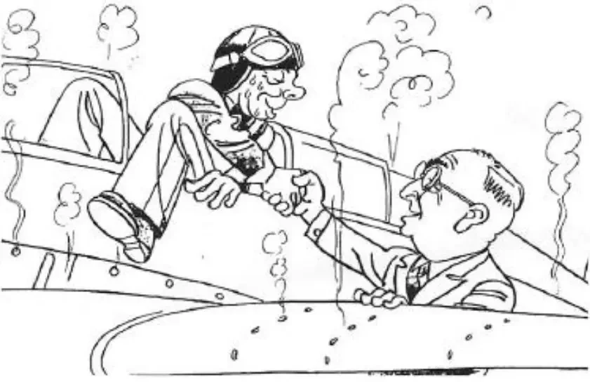 Ганс Дитерле (Hans Dieterle) вылезает из кабины после рекордного полёта. Его встречает ответственный за спецполёты, ассистент Хейнкеля Лупп Кёлер (Lupp Köhler)