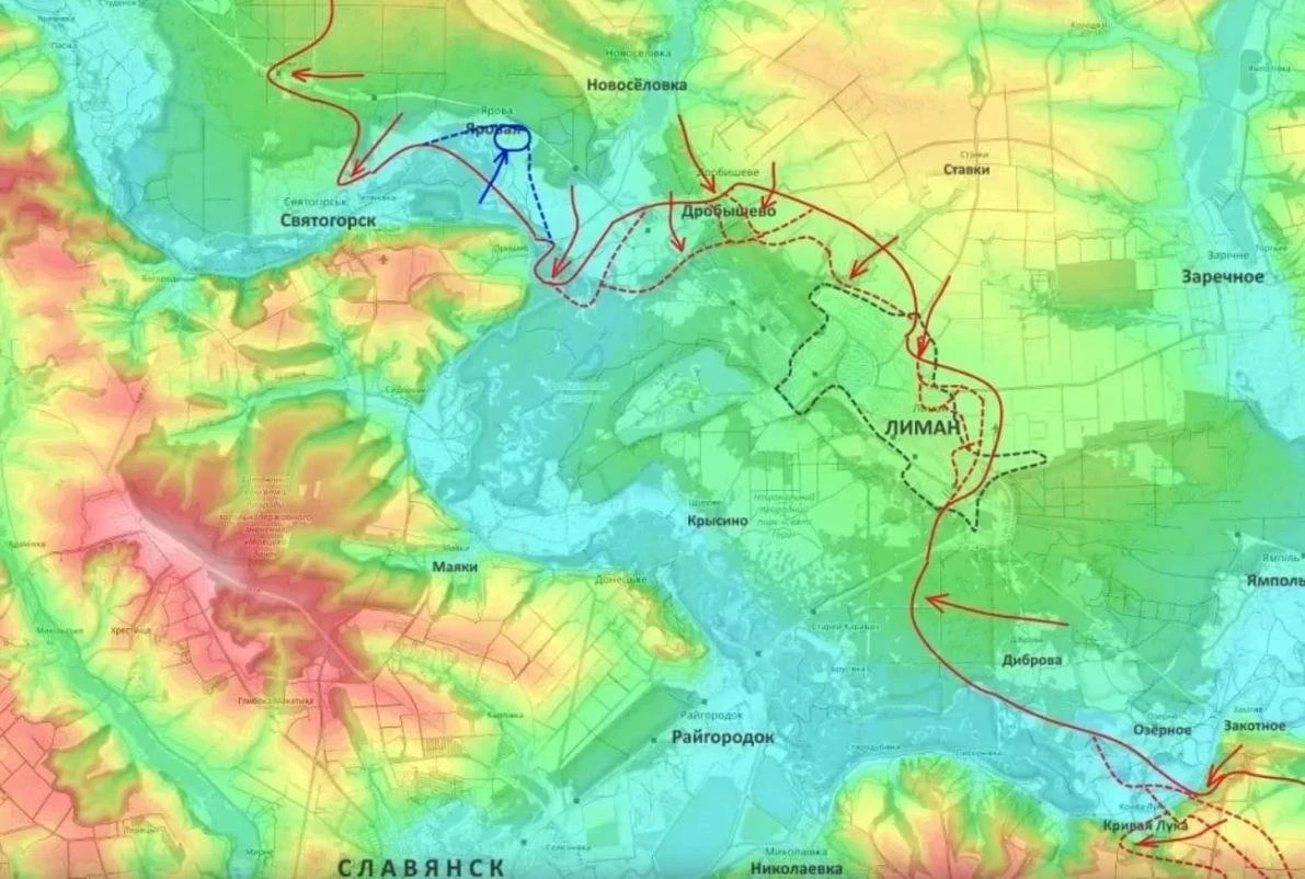 По данным Юрия Подоляки, силы 25-й общевойсковой армии уже зашли в северную часть города. Параллельно с этим войска РФ усиливают охват населенного пункта с флангов: под полный контроль взят расположенный неподалеку поселок Дробышево. Это позволяет планомерно сжимать полукольцо окружения вокруг Лиманской группировки Вооружённых сил Украины.