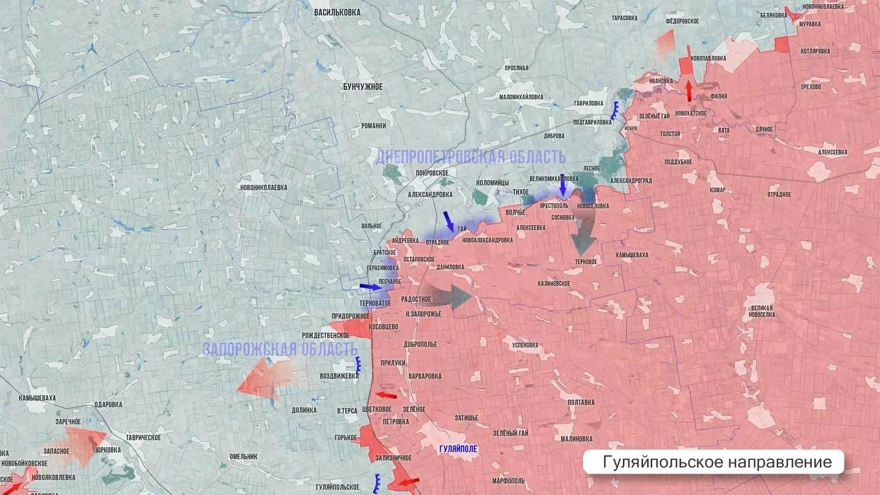 Параллельно продолжаются тяжёлые позиционные бои в районах Магдалиновки, Запасного, Степногорска и Орехова - здесь линия фронта пока остается без существенных изменений.